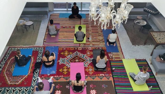 Afin de bien profiter de son sublime patio, Dar El Kif vous propose 2 cours hebdomadaires de Yoga, tous les mardis à partir de 19h00 et tous les samedis à partir de 10h00.