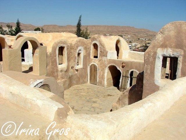 Le ksar, au pluriel ksour a été l’élément central de la vie dans le sud tunisien jusqu’à l’époque moderne. Cette architecture sans architecte de la région de Tataouine montre la créativité adaptée aux besoins de l’époque. Les ksour représentaient les noyaux autour desquels les villages finirent par prendre corps. Ces bâtiments furent une institution agricole, sociale et militaire. Certains disent que les ksour furent des greniers, théorie qui ne peut pas etre prouvée. Peut être que l’explication pouvait être valable s’il y a 2500 ans Hérodote n’aurait pas parlé sur cela et sur la civilisation des Garamantes. C'est toujours Hérodote qui explique ce que signifient les Garamantes: les gens des villes ou les gens qui habitent dans les villes. Donc d’après ses mots et d’après ce qu’on peut admirer aujourd’hui il s’agit bien des villes dans le sens le plus moderne du mot. Sans doute les berbères ont utilisé ces constructions comme refuge des grottes de la montagne qu’ils aménagèrent en habitat provisoire.