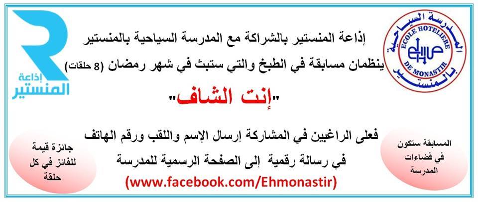 L’Ecole Hôtelière de Monastir et Radio Monastir invitent les amoureux de gastronomie à un inédit concours de cuisine !
