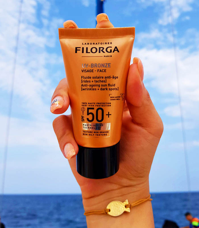L’UV-Bronze de Filorga est un fluide solaire anti-âge qui a l’avantage d’offrir une protection photo renforcée contre les rayons UVA, UVB et IR.