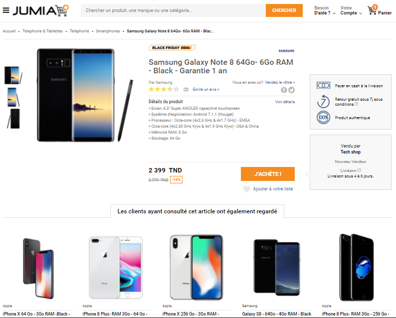 Avec une structure et une interface claire, Jumia.tn a su garder et élargir sa clientèle en leur proposant une recherche facile des produits qui sont bien mis en valeur, le processus de commande et de paiement en ligne est aussi très facile.