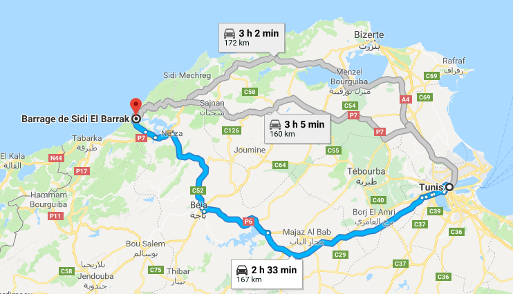 Partant de Tunis, il faut prendre l’autoroute A3 vers Oued Zarga puis la Nationale P11 en direction de Beja. Ensuite, prendre la route C52 direction Nefza. Arrivé a Nefza, vous devez prendre la direction de Sejnane.