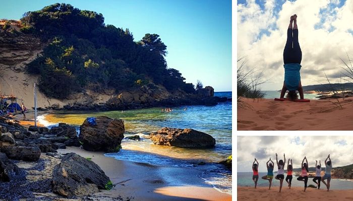 Nous avons décidé de camper dans une plage sauvage à Cap Serrat, loin de toute civilisation, en compagnie de Neila Drira et Silvia Ares, fondatrices de « The Yoga Studio » et du « Capitaine Pim » qui nous a assisté durant notre weekend d’évasion.