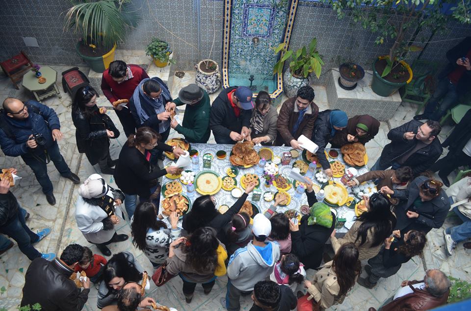 C’est à l’espace Dar Kmar que le groupe a bien été accueilli dans un cadre chaleureux et authentique qui faisait appel aux traditions tunisiennes aussi présentent au décor qu’au menu du petit déjeuner typiquement tunisien. Le suave parfum de musk embaumait l’atmosphère et rajoutait encore plus de charme à l’endroit, aussi bien marqué de joie et vivacité grâce à la bonne humeur du groupe.