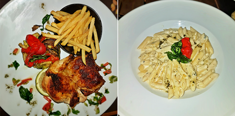 La carte du restaurant est assez variée, Grillades, pâtes, pizzas, des plats délicats à base de fruits de mer, des grillades…