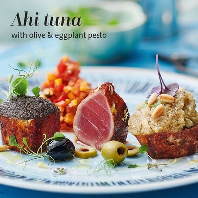 - Ahi Tuna : Un plaisir fin inspiré de saveurs méditerranéennes, ce plat associe un filet de thon jaune délicatement sauté, une ratatouille revisitée et une tapenade d’olives noires.
