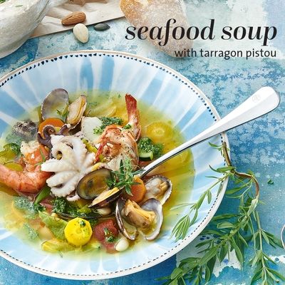 - Seafood Soup : Ce léger plat de fruits de mer est sublimé par l’estragon, une herbe parfumée au goût doux-amer délicat. Son arôme rappelle un mélange d’anis et d’aspérule.