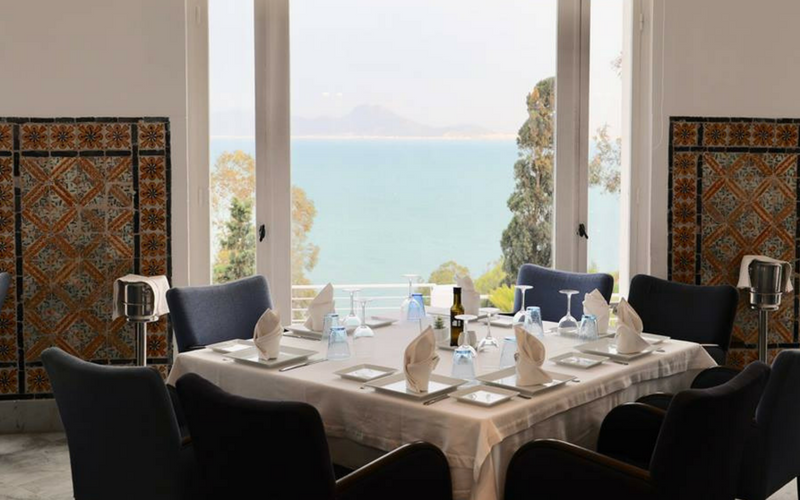 Surplombant la baie de Tunis, Villa Didon Carthage est un symbole de la haute gastronomie avec une cuisine internationale et une carte raffinée.