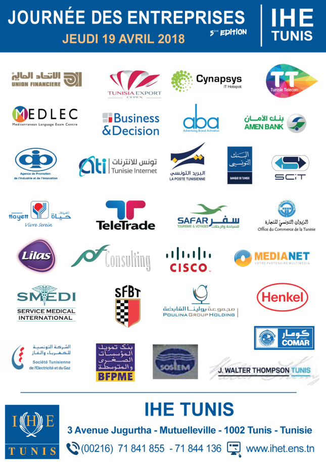 Le 19 avril 2018 s’est tenue la 5ème édition de la “Journée de l’entreprise” à l’Institut des Hautes Études de Tunis.