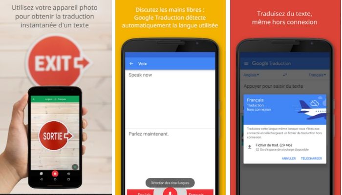 Google translate est disponible sur Google Play et App Store