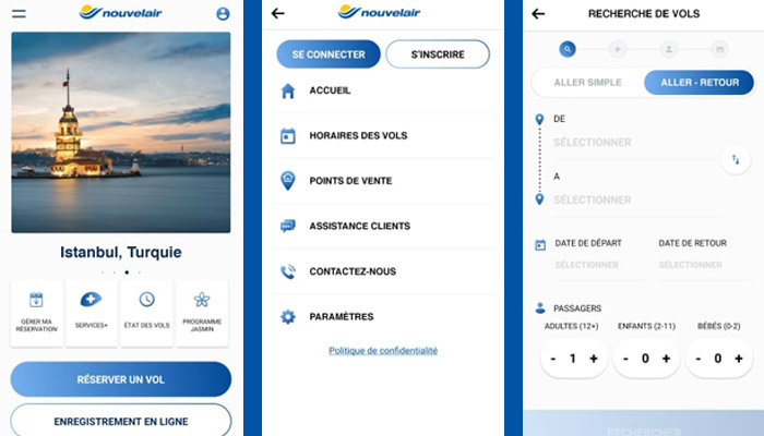 Disponible sur Google Play et AppStore, l’application Nouvelair est très facile à utiliser. Elle vous permet d’ailleurs de réserver votre vol, de consulter ses horaires, d’acheter votre billet électronique, de profitez des Services+ et de consulter vos points de fidélité en seulement quelques clics.
