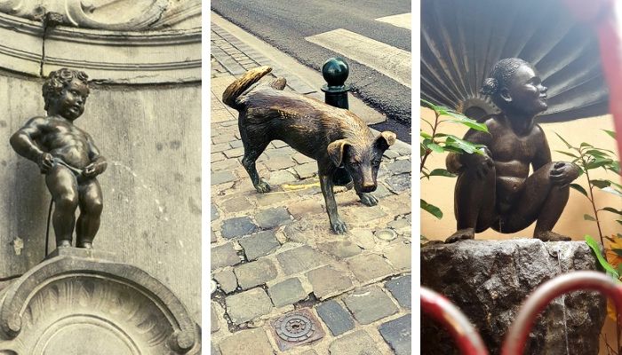 Si vous souhaitez voir des trucs insolites, je vous conseille de prendre en photo les petites statuettes: Zinneke-Pis, Jeanneke-Pis et Manneken Pis. Ce dernier fait 55cm de hauteur, c’est le symbole le plus connu des Bruxellois, il personnifie aussi leur sens de l'humour et leur ouverture d'esprit.