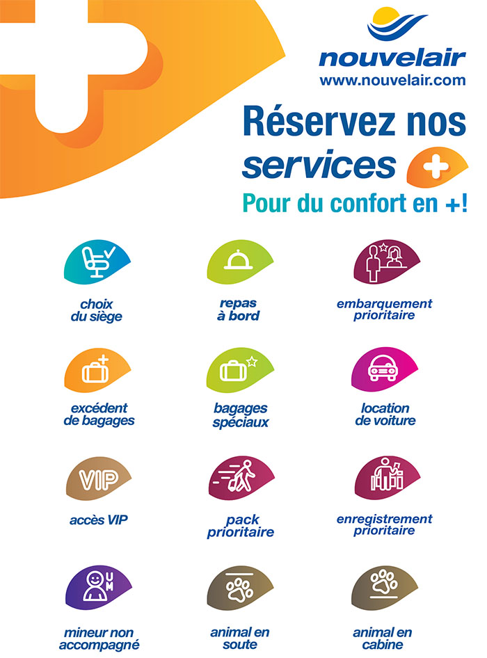 Pour plus d'informations, nous vous invitons à visiter la page consacrée aux services+ sur le site web de nouvelair.