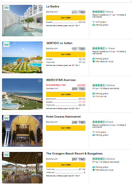 Marhba.tn partage avec vous les 5 meilleurs Hôtels à Hammamet selon tripadvisor.